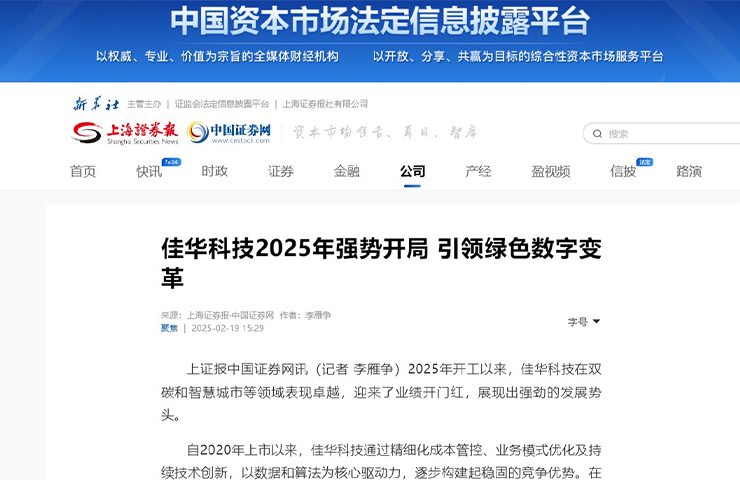上海證券報 | 佳華科技2025年強勢開局 引領綠色數字變革